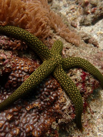 An dem Tag an dem diese Bilder entstanden sind war außer uns noch besagter Ami dabei und eine weitere Deutsche, die gerade ihren Open Water Diver absolviert hat. Wir hatten daher einen Guide für uns und das war auch gut so, denn der Tauchgang war für Anfänger wie uns schon nicht ohne. An dem Tag hatten wir recht starke Strömung und der Austausch von kaltem und warmen Gewässern war an dem Hang, an dem wir waren deutlich spürbar, was bei Nora mal eben zu kurzen Panik bzw. Kälteattacken führte xD.