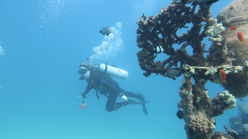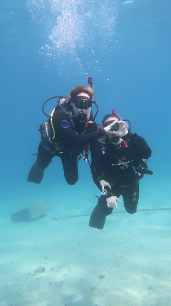Ich hatte von Anfang an gesagt, dass ich auf Schnuppertauchen im Schwimmbad keine Lust habe, wenn schon, will ich auch ins Meer! Gesagt, getan, getaucht. Nach kurzer Einführung ging es dann auf 6 m runter und auch wenn ich erst mal super nervös war, hat mich die Unterwasserwelt direkt begeistert. Für mich war klar: Ein Tauchschein muss her!